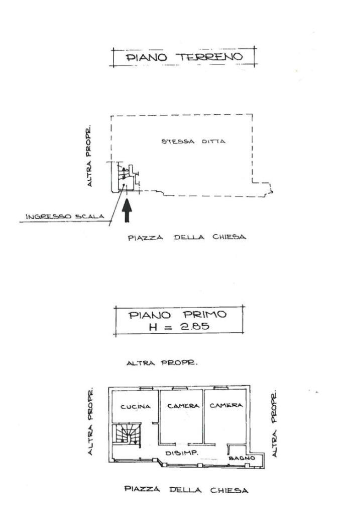 Il piano primo ospita la parte abitativa che si compone da due camere da letto, un bagno e una cucina abitabile.
