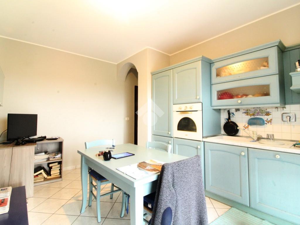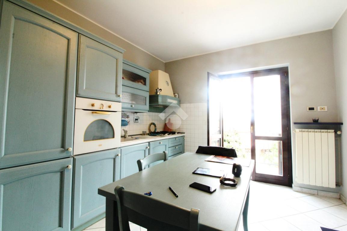 Una cucina abitabile con angolo tv, si affaccia sul grande balcone esposto a sud.