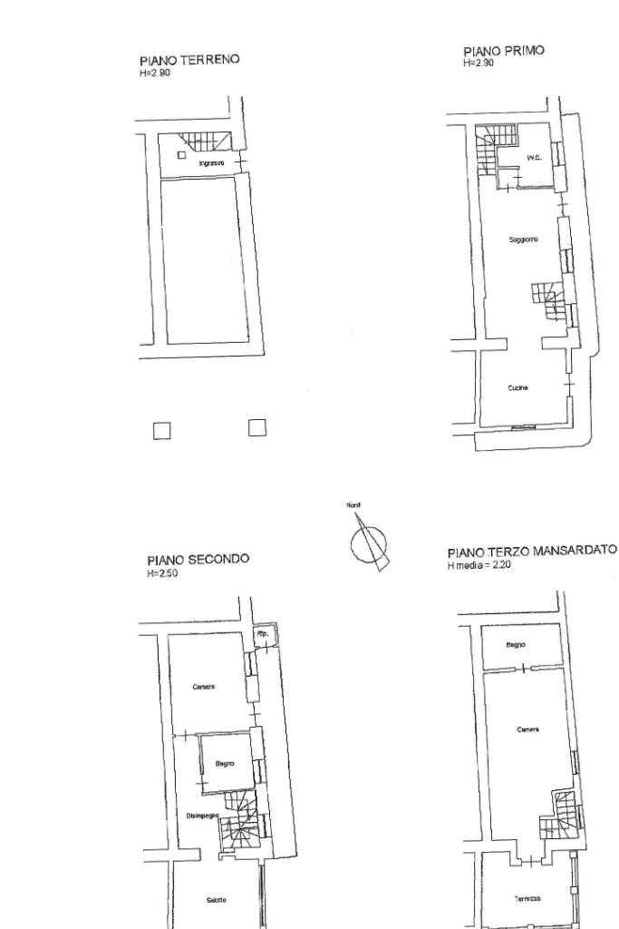 L'immobile si sviluppa su tre piani; la zona giorno, al piano primo, si compone di un ambiente open space, e un bagno finestrato dotato di doccia.