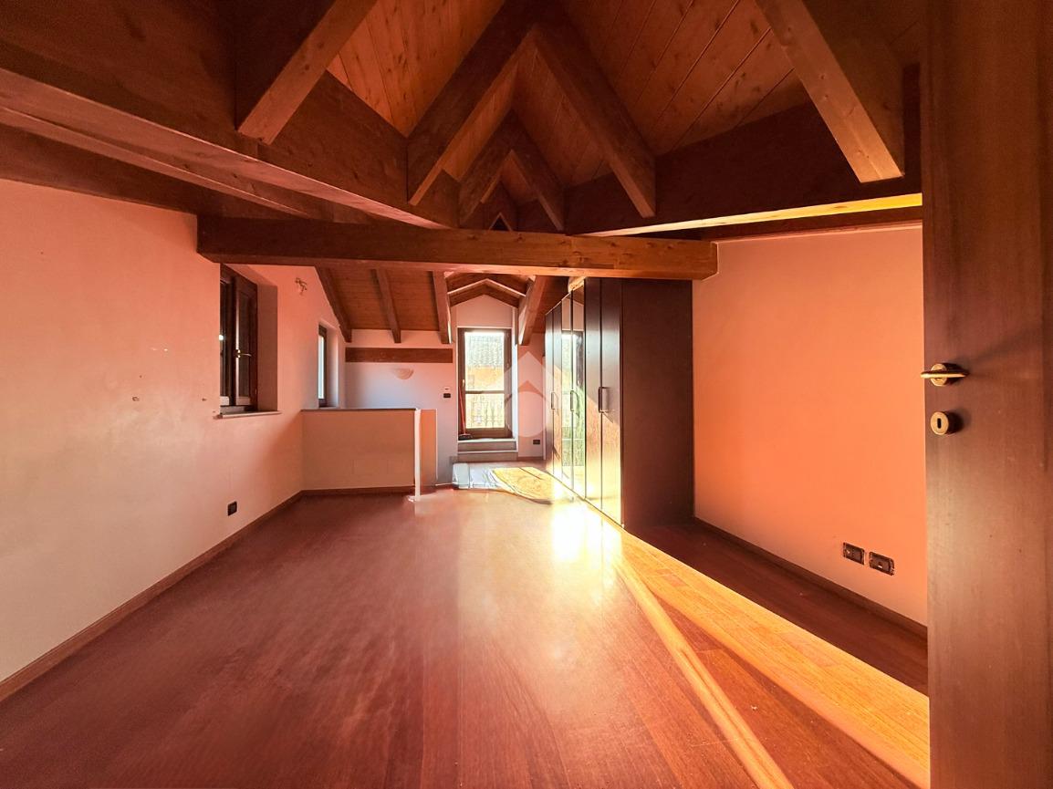 Il piano sottotetto, mansardato con travi a vista, accoglie la terza camera da letto con bagno privato e un grazioso e luminoso terrazzo.