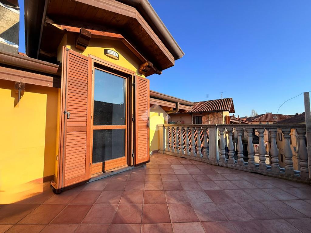 In posizione centrale, comodo a tutti i principali servizi del paese di Castellamonte come scuole, supermercati e negozi, appartamento su più livelli, con accesso indipendente.
