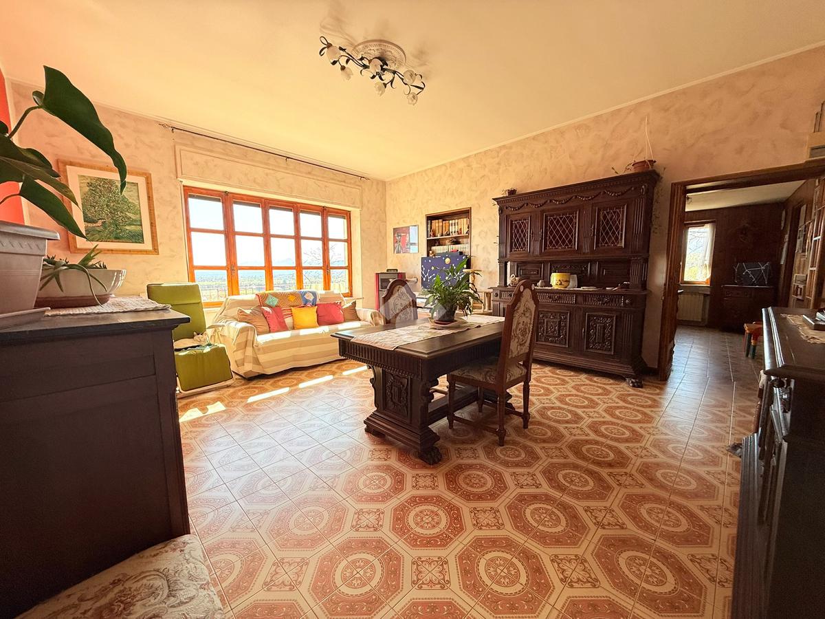 Il primo piano, collegato internamente, accoglie la seconda unità abitativa composta di tre camere da letto (di cui una con cabina armadio e collegamento diretto con il bagno), un soggiorno con vetrata e vista panoramica, due bagni, un tinello e una cucina.