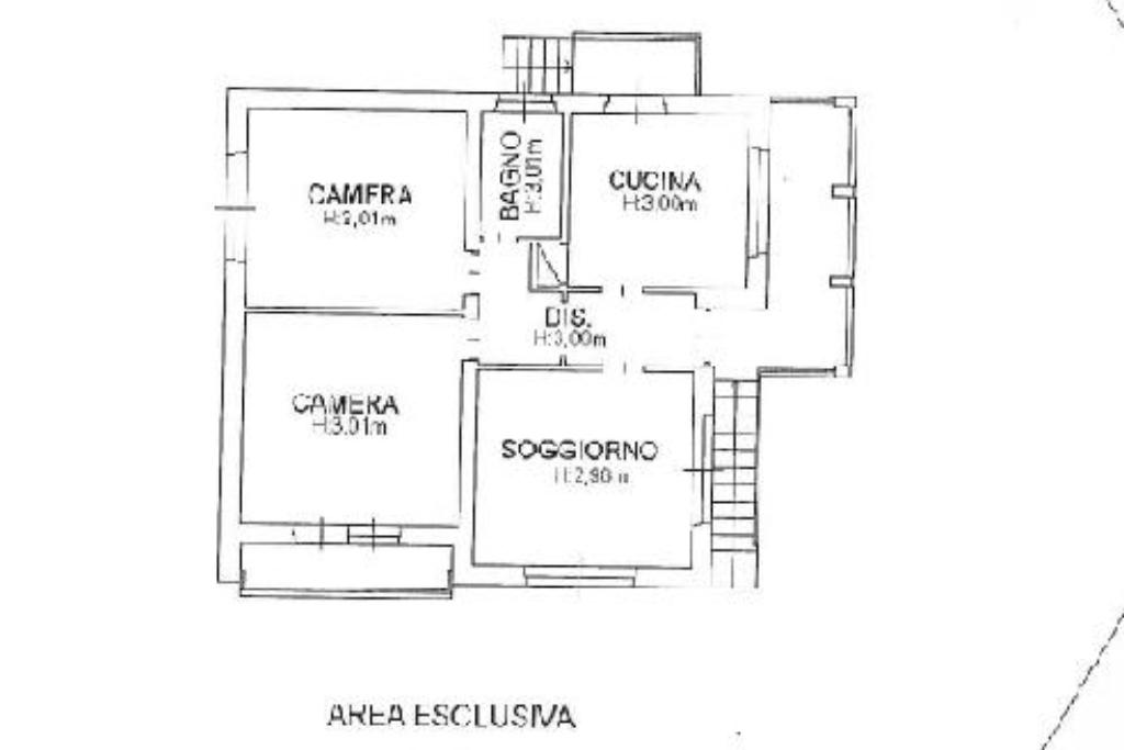 La zona giorno è composta di una cucina abitabile e di un soggiorno luminoso; la zona notte comprende due spaziose camere da letto; a completamento del piano vi è un bagno con vasca.