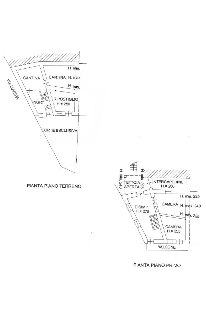 Il piano primo, collegato tramite scala interna, ospita due camere e un ampio disimpegno.