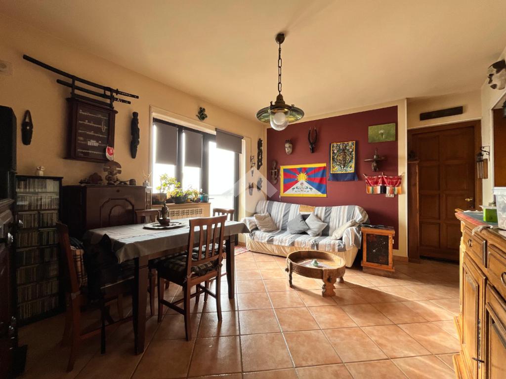 Al piano secondo, collegato con scala esterna, si sviluppa un luminoso soggiorno, con accesso diretto al terrazzo da cui godere di un'ottima vista panoramica, una pratica cucina, due camere da letto e un bagno dotato di doccia.