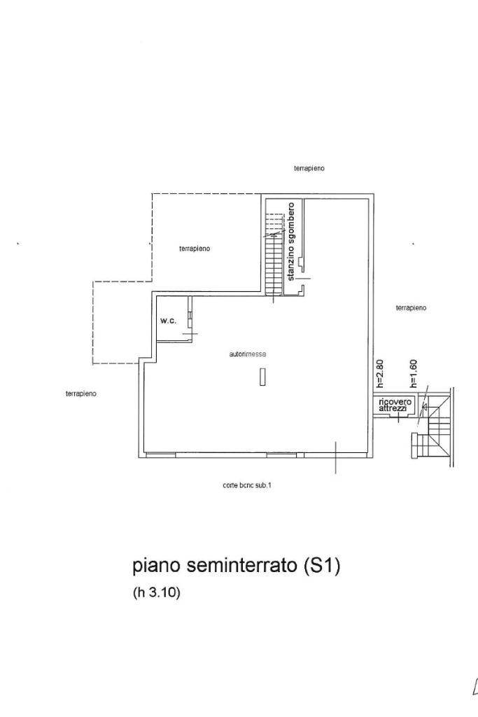 Al piano seminterrato troviamo un ampio box auto di circa centoventi metri quadri, perfetto per più autovetture, area hobby, palestra o spazio deposito.