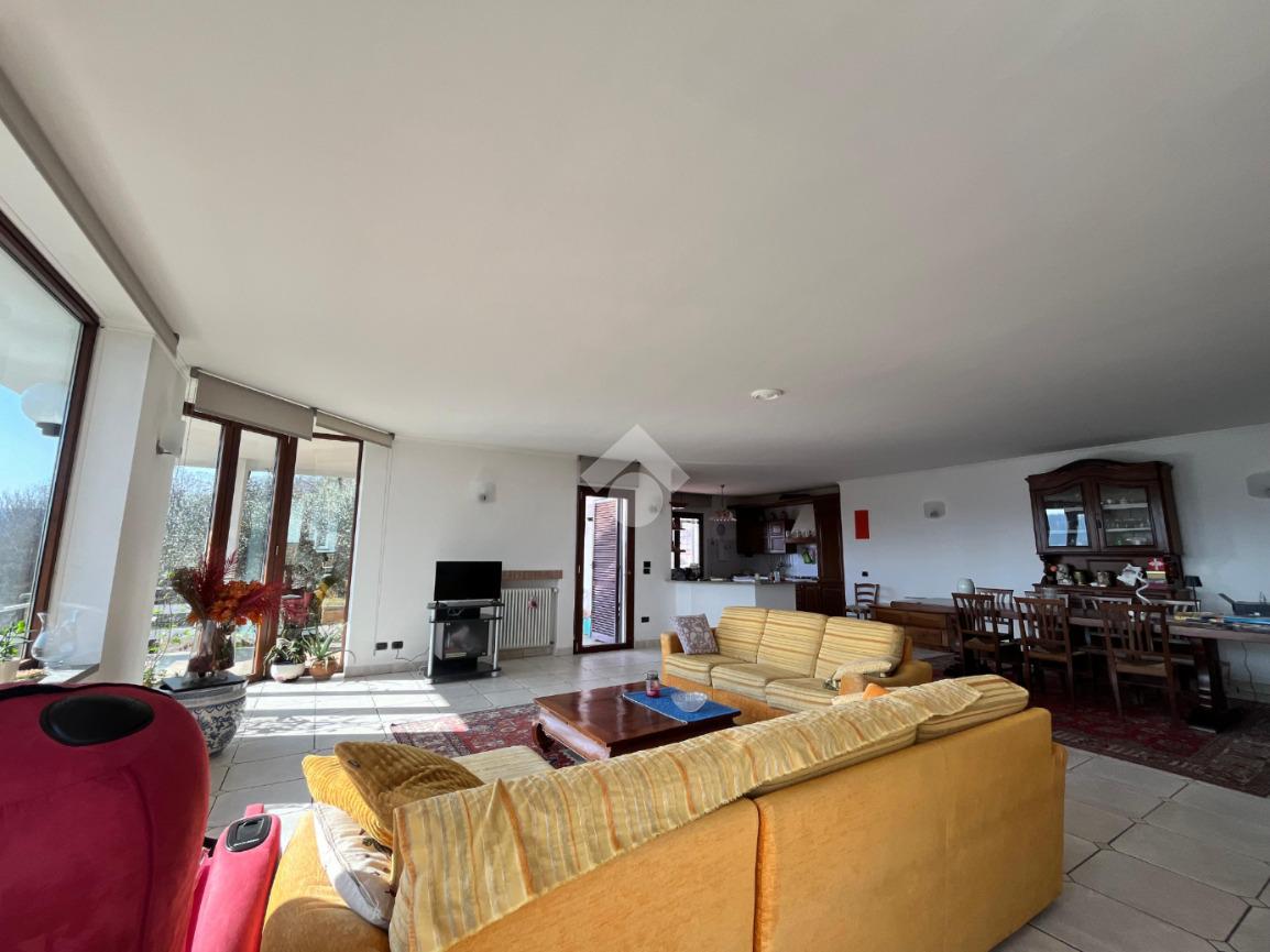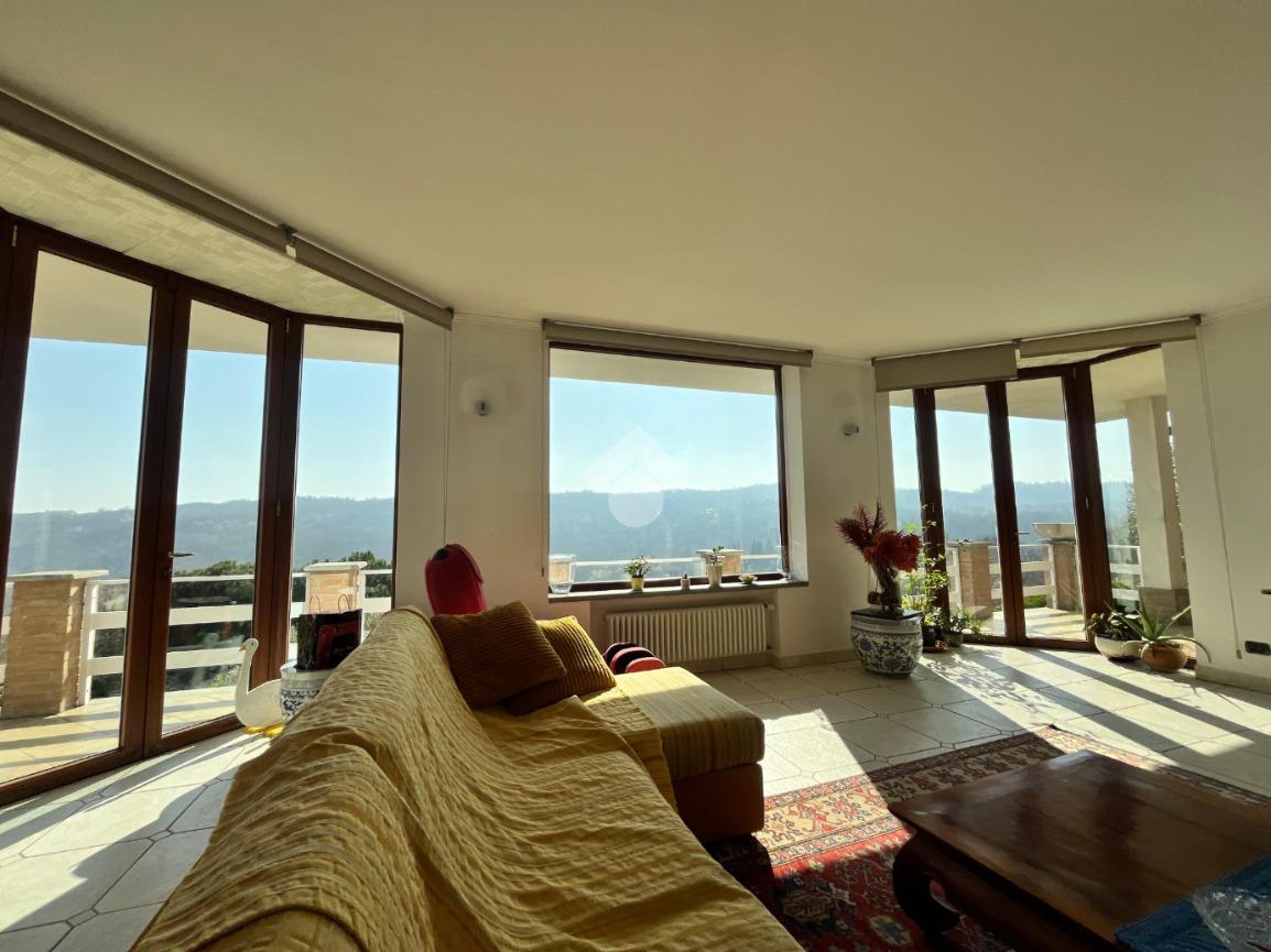 In posizione dominante e riservata, splendida villa luminosa, panoramica ed elegante, caratterizzata da ampie vetrate nella zona giorno che regalano una straordinaria continuità tra spazi interni e spazi esterni ed una vista aperta sul paesaggio circostante.