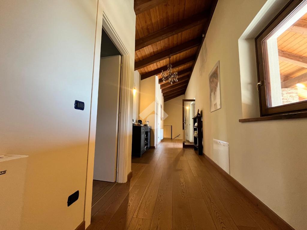 Al piano primo si sviluppa la zona giorno impreziosita da numerose finestre che garantiscono una grande luminosità.